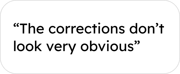 Testers noticed that the text was a bit difficult to read, so the font size was made larger. The way the solution was presented was confusing to testers. Putting the side by side was easier to understand. Users were worried about accidentally switching to another screen while typing, so the navigation bar was removed.